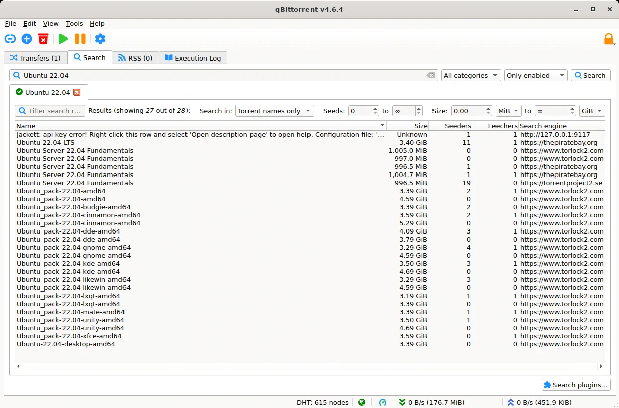 qBittorrent позволяет искать раздачи прямо из интерфейса программы, а также управлять загрузками удалённо через любой браузер.